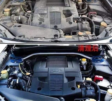 第五步,给发动机舱喷表板蜡,给内饰喷表板蜡,给轮胎上刷点轮胎油。这一步是点睛之笔,可以让车看上去更新更亮一些。
