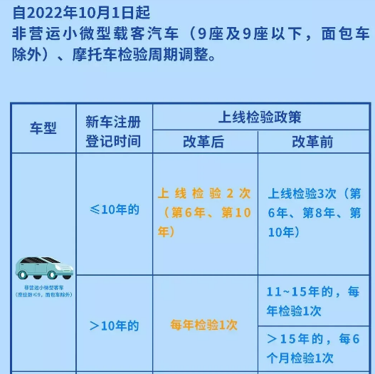 #公安部:车检周期10月1日起放宽# 千呼万唤始出来,机动车年检终于做出重要改变,从2022年10月1日起,车检的周期将进一步放宽:对非营运小微型载客汽车,将原10年内上线检验3次调整为检验2次(第6年、第10年),并将原15年以后每半年检验1次,调整为每年检验1次。10年以内,每两年申请一次检验标志,这个起什么作用?我想这次主要是为了那些违章后不处理,罚款不交纳的车主。