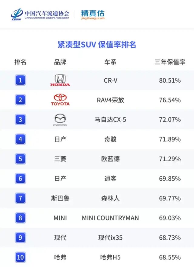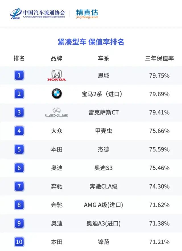 2021年度二手车保值率排名,依照“二手车交易价格÷新车指导价”的计算方式,对不同品牌不同级别车型进行保值率排名,主要参考指标是3年车龄的保值率。对于这个榜单,大家认为符不符合实际情况?