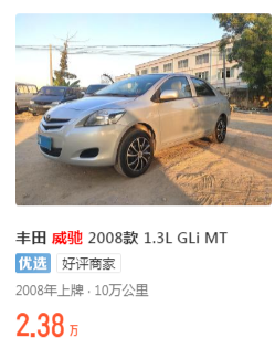 第四台我给大家推荐08年左右的手动威驰,目前的售价在2万多到3万之间,这台车也是有两个动力版本,一个是1.3的,一个是1.6的。