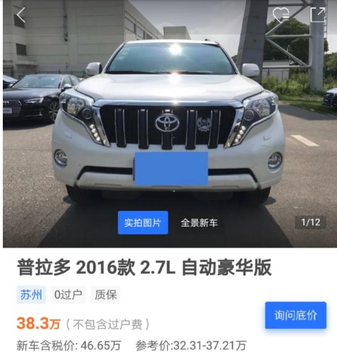 我们就以中规2.7丐版来说吧,跑了3年,差不多也就是2015款。2015款普拉多自动标准版当年的新车指导价也就38.98万,不过今时不同往日,目前港口的2.7霸道没有下来43万的,新车价格增加,必然导致二手车也水涨船高,这也是为什么有人买台普拉多再卖掉还能挣钱的原因。