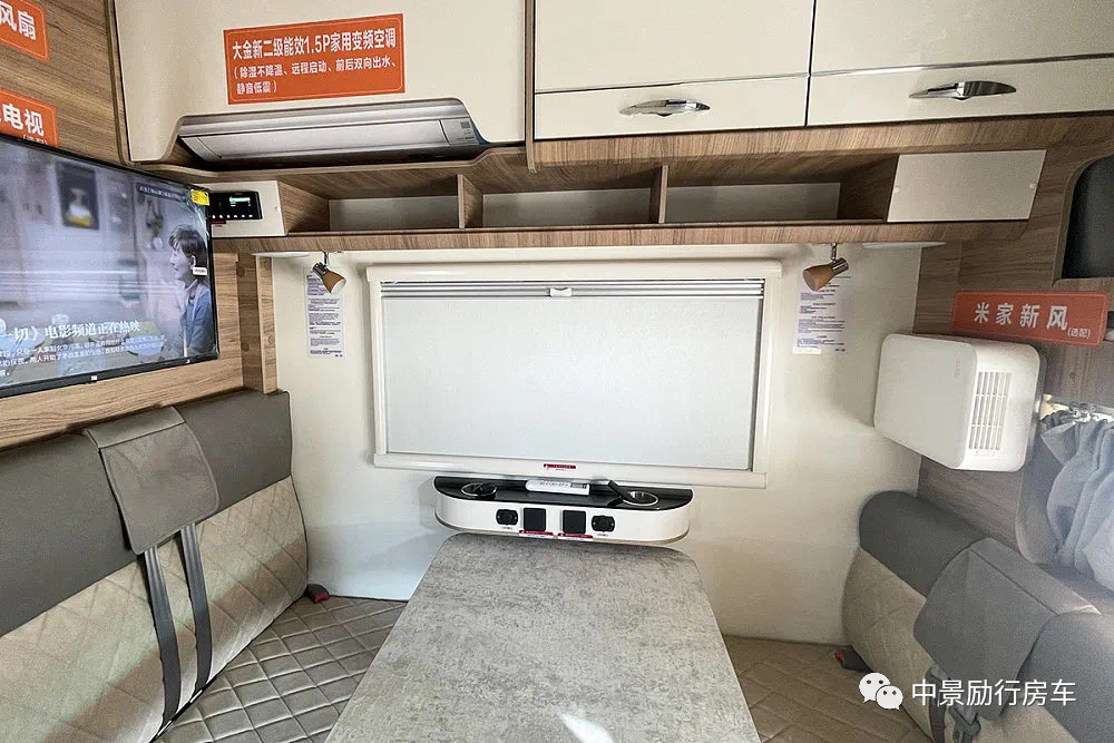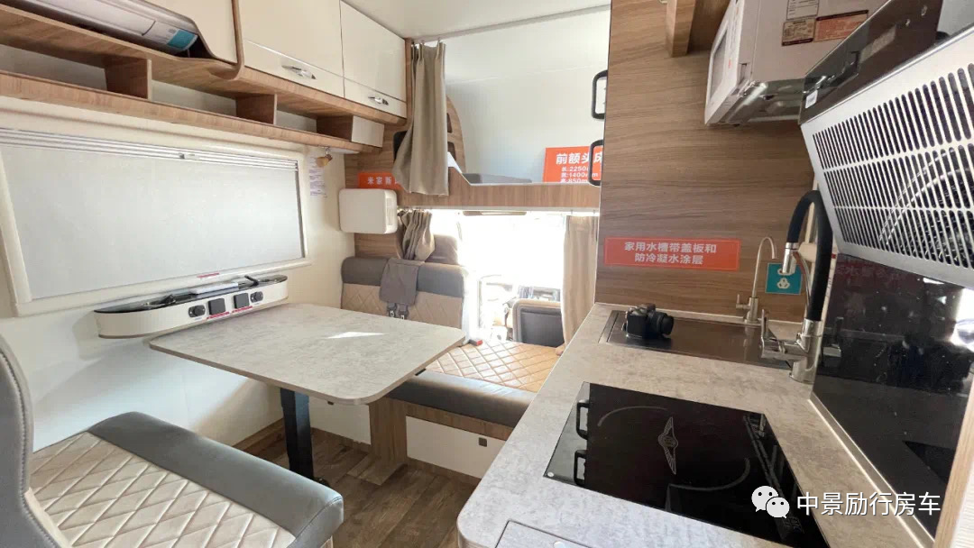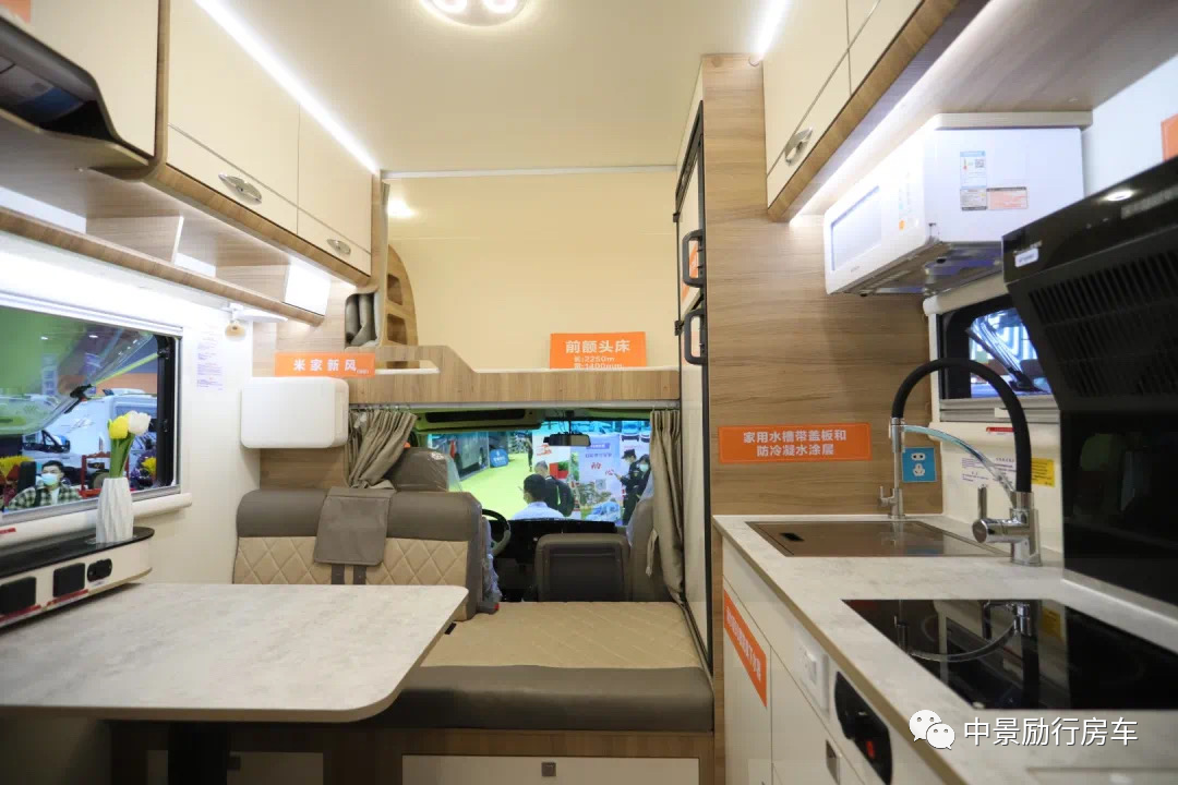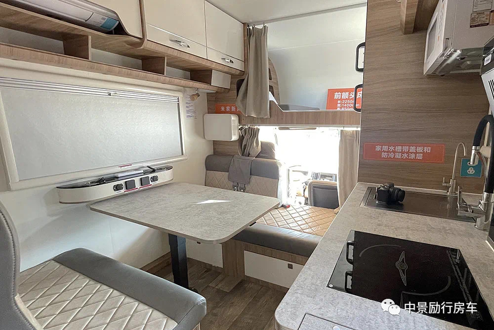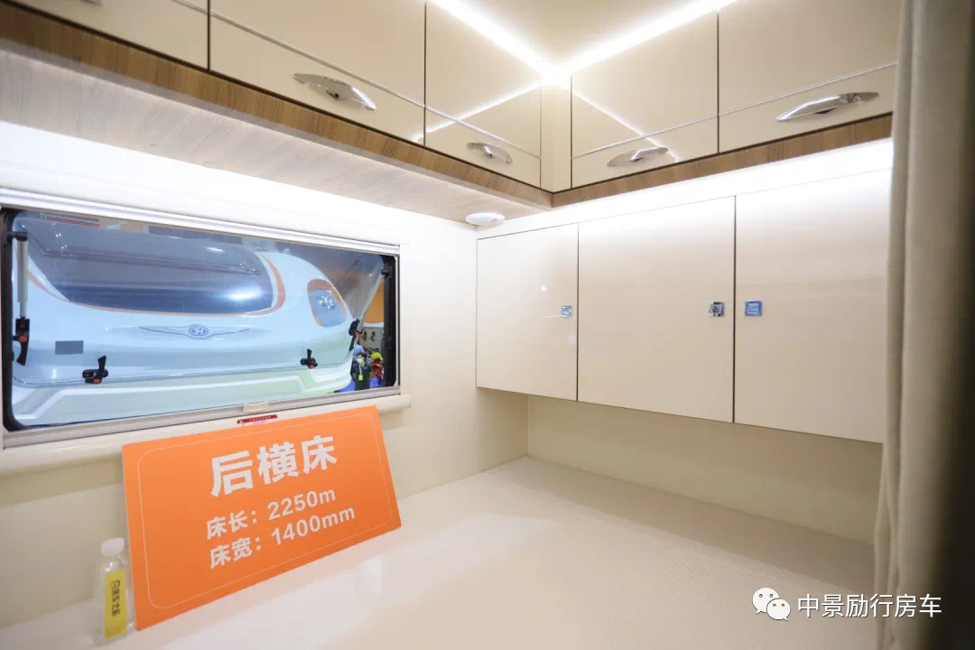 【车内布局】主副驾驶空气座椅,乳胶床垫,额头双人床,车尾双人床,游艇级别防水耐磨地板革,E0级环保家具