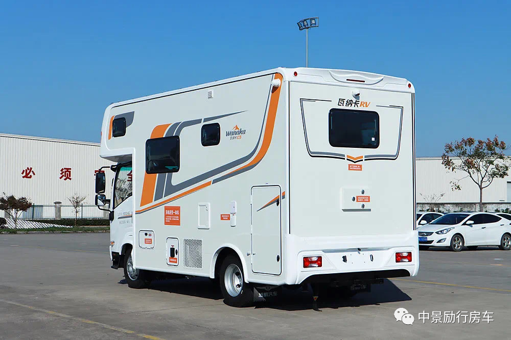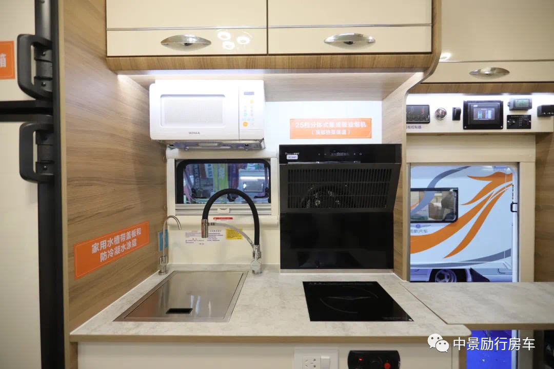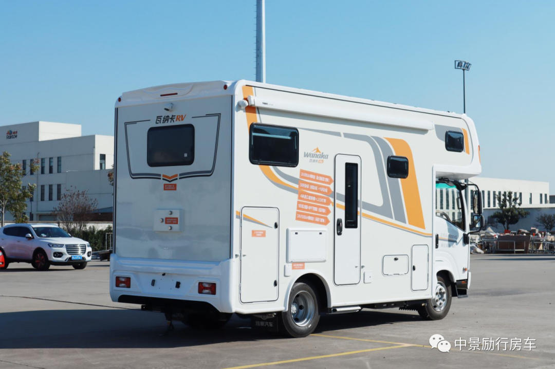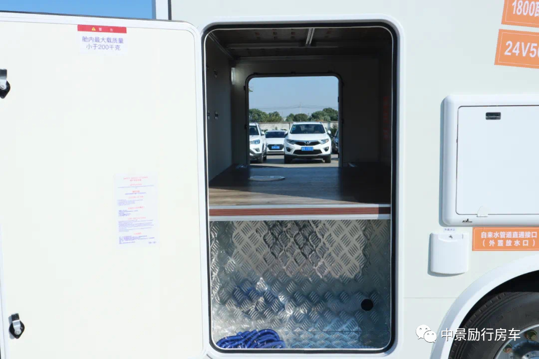 【车外配置】后驱双胎,铝合金轮毂罩壳,电动联动踏板,房车专用户外遮阳棚,双向换气扇,加水口,充电口,外推窗,贯穿式储物仓,室外厨房,燃气抽拉灶台