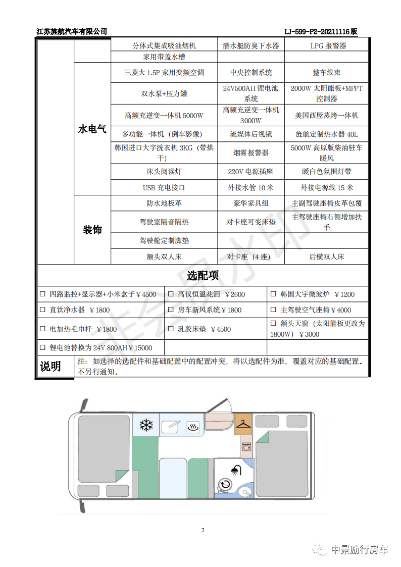 【电器配置】24V500ah磷酸铁锂电池12度电,高频充逆变一体机3000W逆变器,2000W太阳能板+MPPT控制器,英德尔224L冰箱,塞德福德C200马桶,顶三菱大1.5P家用变频空调,流媒体后视镜,双水泵+压力罐,车内外氛围灯,新西兰富声功放+JBL喇叭*4,韩国大宇微波炉,思路监控+小米盒子+显示器,电加热毛巾杆,新风系统,韩国大宇洗衣机带烘干3KG,5000W高原版柴油驻车暖风,美国西屋蒸烤一体机,分体式集成吸油烟机