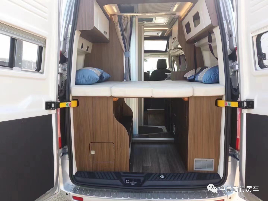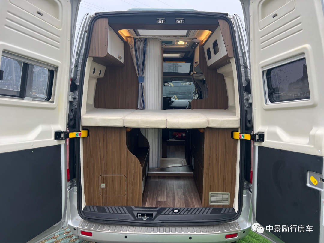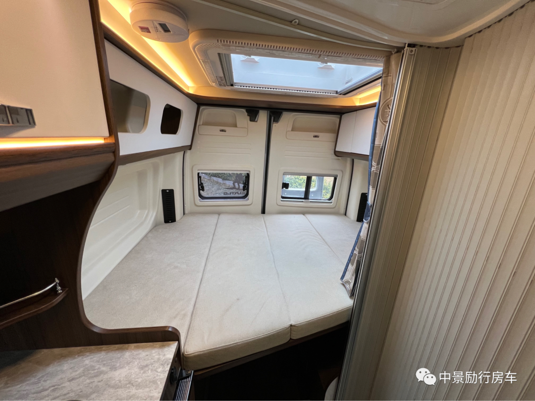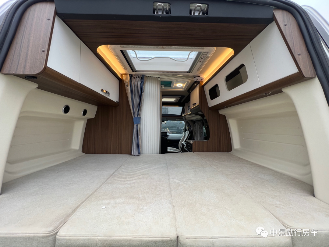 【车内布局】车尾双人床1850×1250mm,游艇级别防水耐磨地板革,E0级环保家具