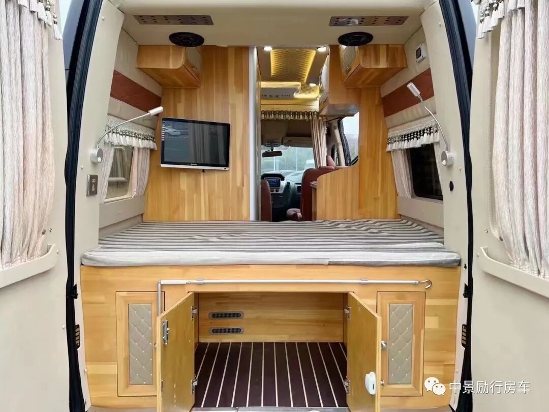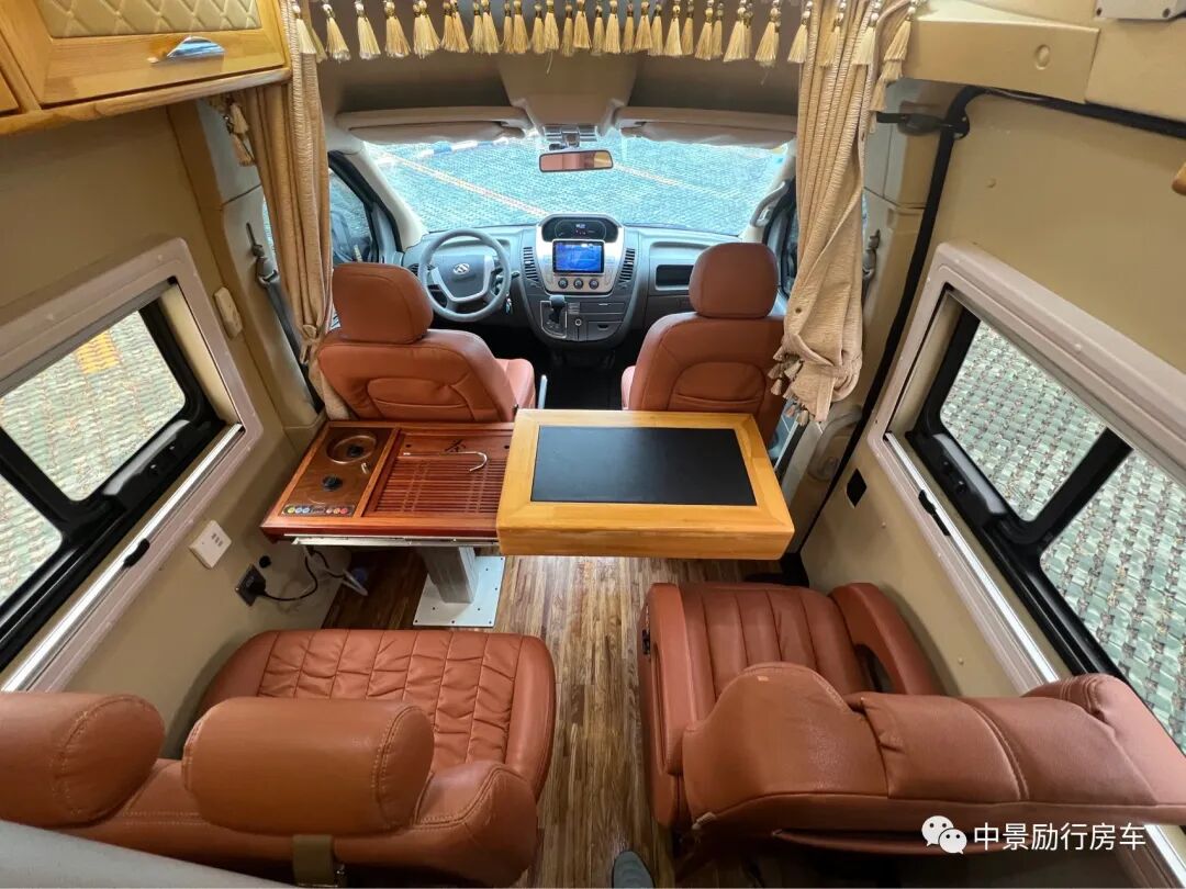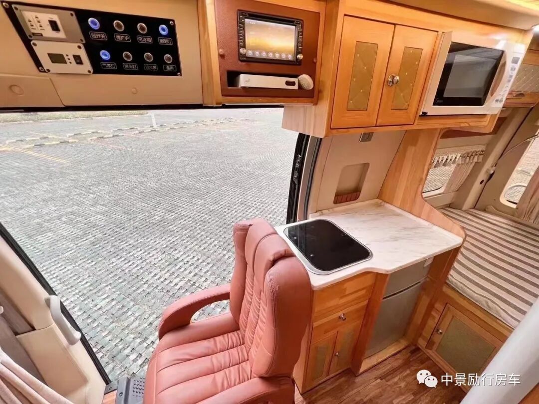 配置:定速巡航、中控大屏、实木家具、实木地板、400ah锂电、400w太阳能发电板、3000w逆变器、120L清水箱、70L污水箱、电热水器、多美达顶置空调、微波炉、双开门冰箱、网络电视、电动升降卡桌(茶台)、电动粉碎马桶、户外遮阳篷、后置爬梯、自行车架、特鲁玛外置燃气接口……
