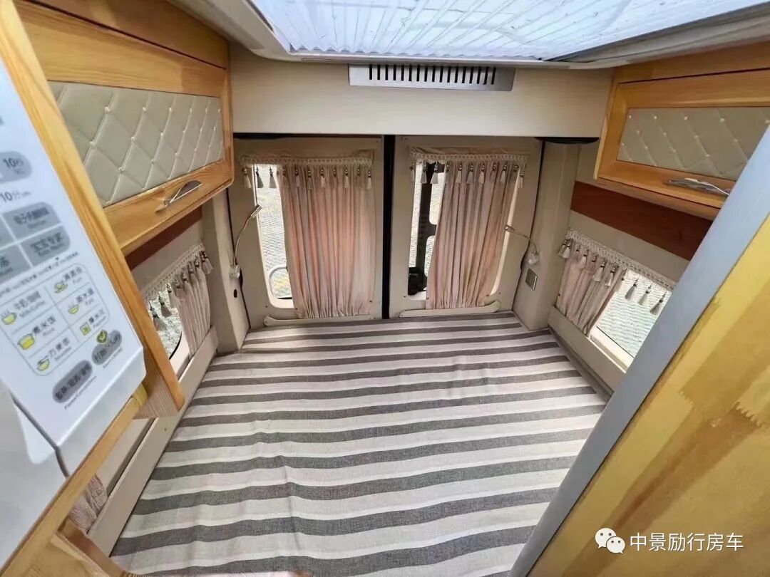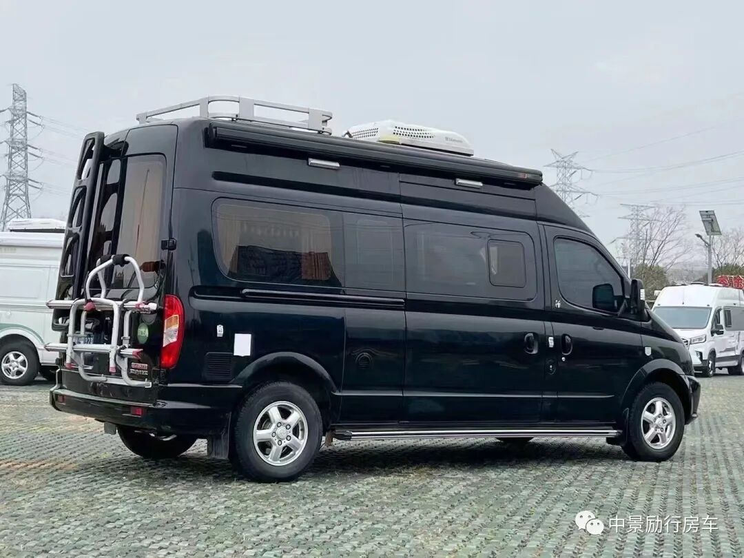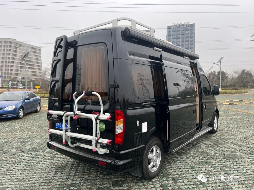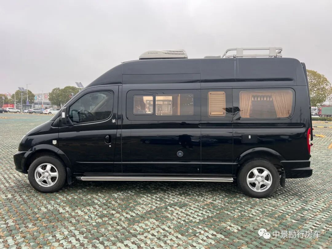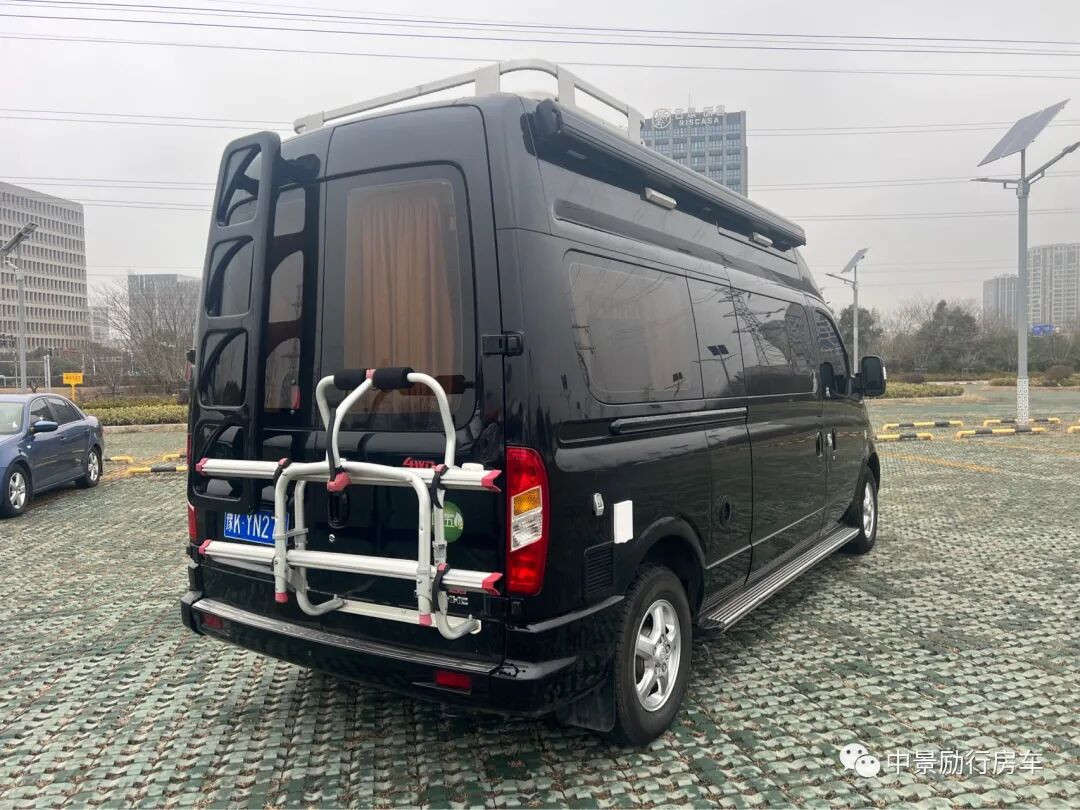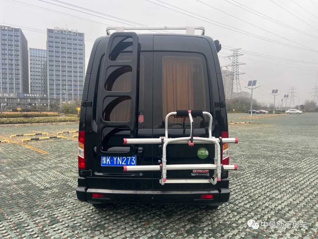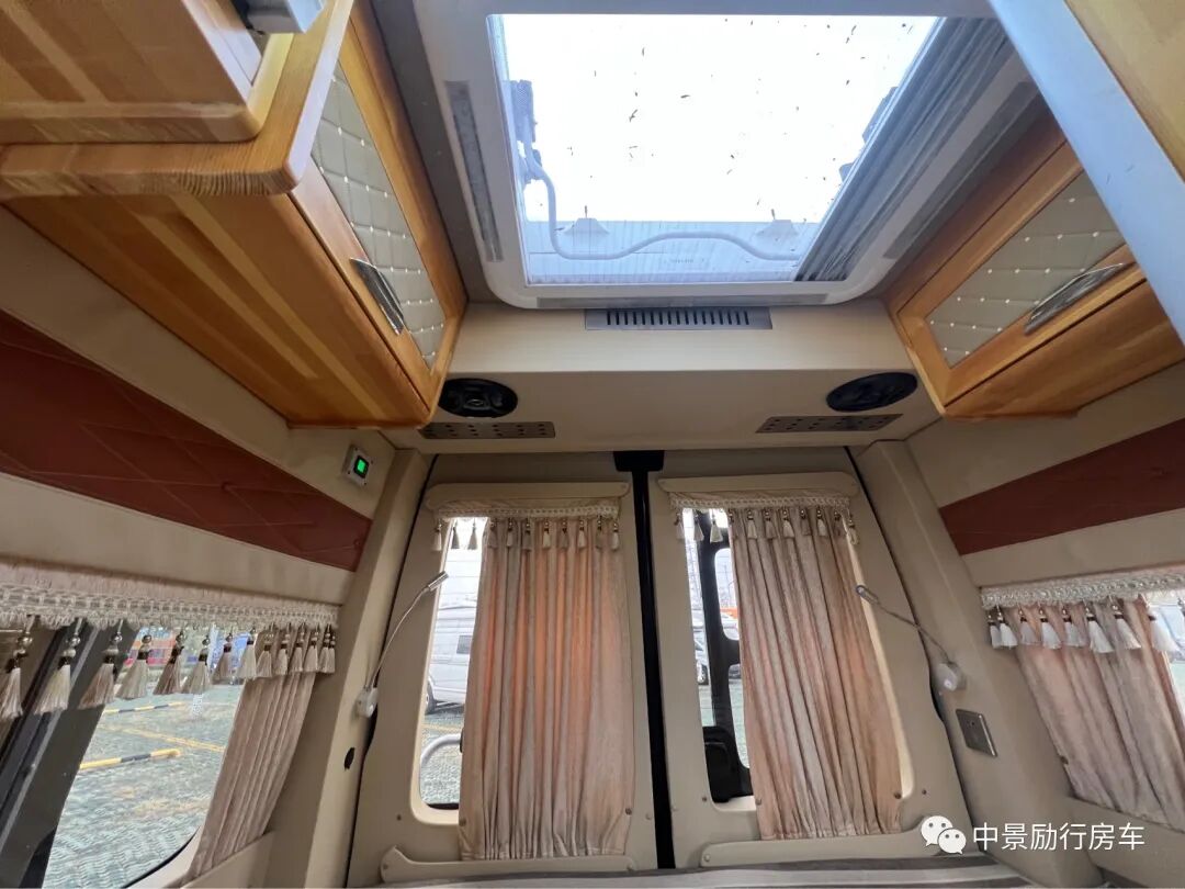 【车外配置】铝合金轮毂罩,城市越野踏板,房车专用户外遮阳棚,双向换气扇,加水口,充电口,外推窗,两侧外拓包,极光银金属漆,车顶三天窗,自行车架,后爬梯