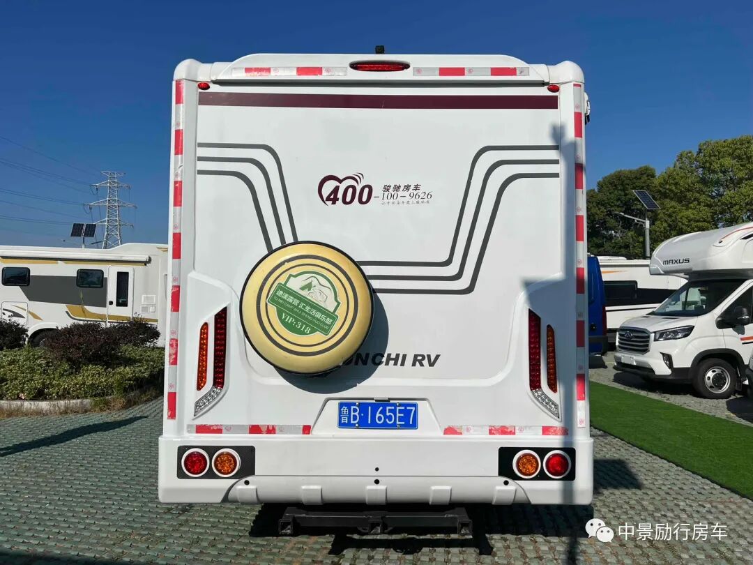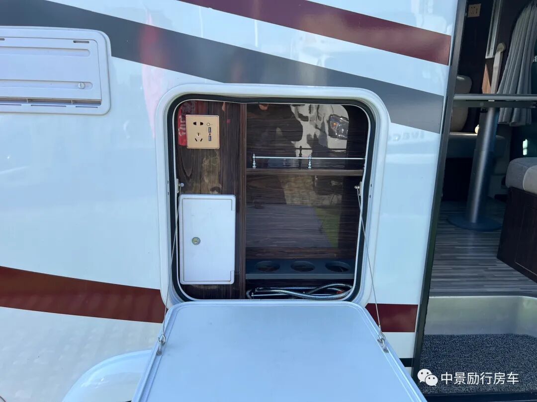 【车外配置】后驱双胎,电动联动踏板,房车专用户外遮阳棚,双向换气扇,加水口,充电口,外推窗,纵床下方大储物仓,驻车支撑腿,室外厨房,燃气抽拉灶台