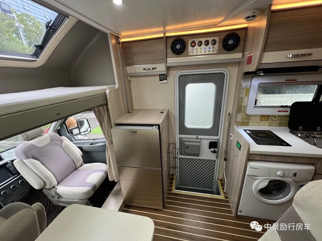 【电器配置】800Ah磷酸铁锂电池,870W硬板太阳能,3000W逆变器,128L冰箱,塞特福德盒式抽拉马桶,顶置宏都空调,3Kg洗衣机,32寸网络电视内外氛围灯,