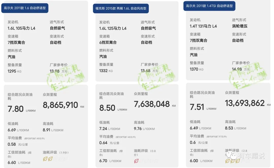 同样是1.6自然吸气,高尔夫搭载7挡双离合,福克斯搭载6挡双离合,在油耗表现上,高尔夫的油耗较低些。而选择高尔夫的朋友,大多会考虑1.4T的版本,动力更强,操控性更好,油耗也最低。