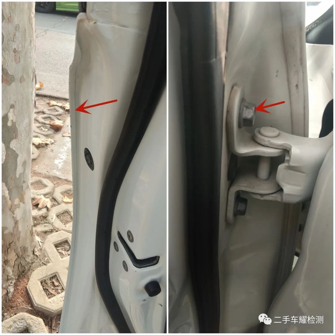 ⒉检查覆盖件是否更换。覆盖件指所有车门,前后机盖。方法①螺丝是否有拧动痕迹。②门边是否有封胶。