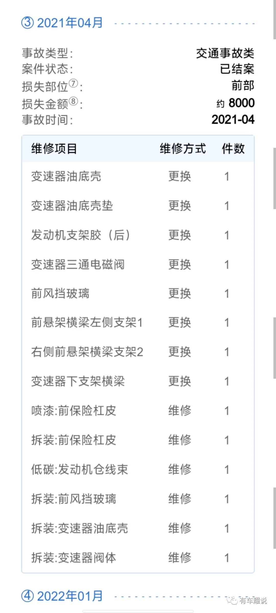 ⒋事故出险维修,这个大家一定不要放手给保险公司不管,虽然不花钱,但该换的不该换的一大堆,记录不好非常影响价格。能修的一定不要换。