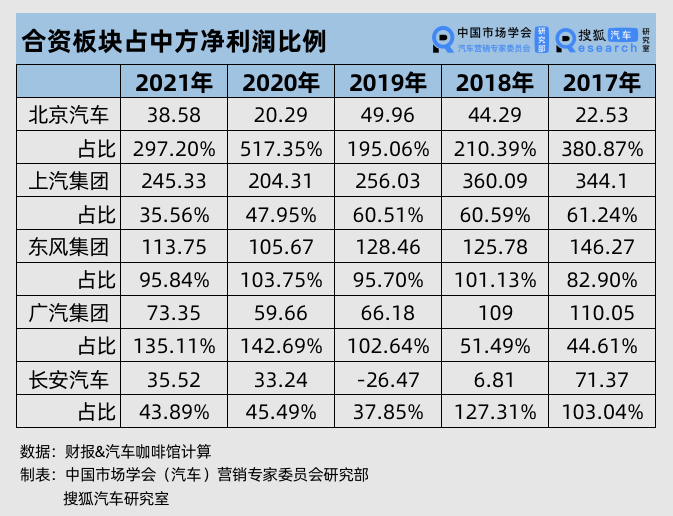 北汽、广汽、东风仍需合资支撑 上汽、长安合资贡献率低于50%
