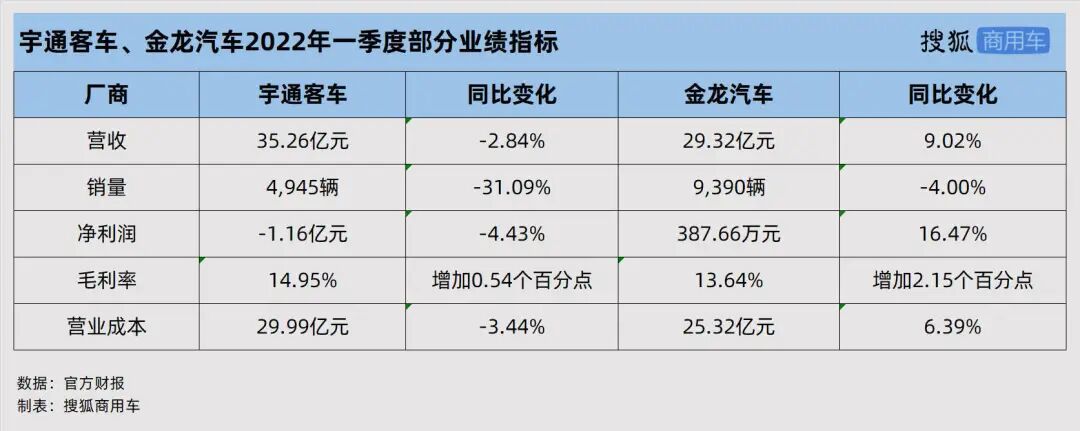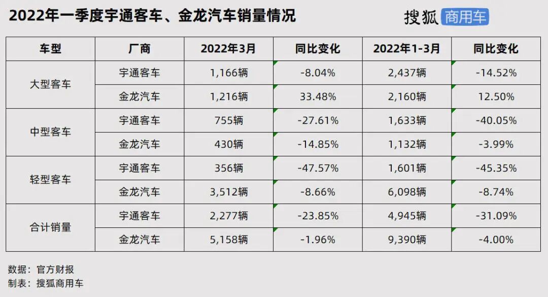 大中型客车销量低迷,2022年一季度宇通净利润不敌金龙