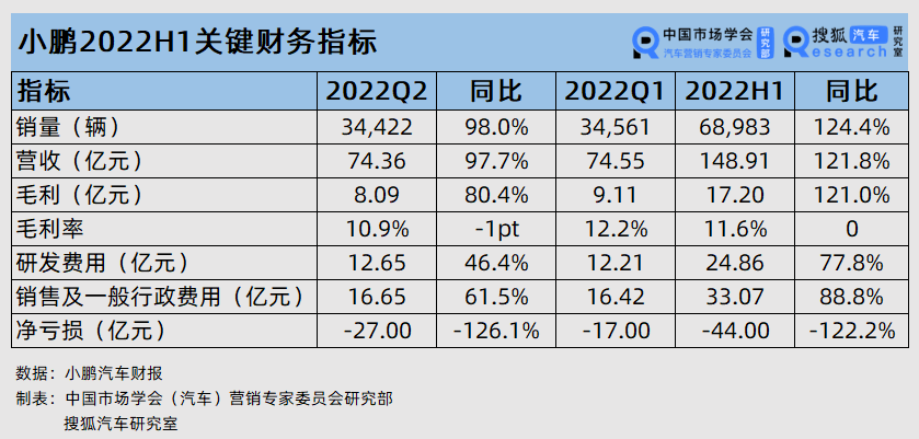 半年来看,小鹏的增长依然强势。2022年上半年,小鹏累计交付近6.9万辆,领跑新势力,同比增速保持在一倍以上。相应地,营收和毛利也同比增长超120%。上半年整体毛利率与去年持平。但由于Q2亏损的扩大,上半年亏损较去年同期也扩大了122%,累计亏损44亿元。