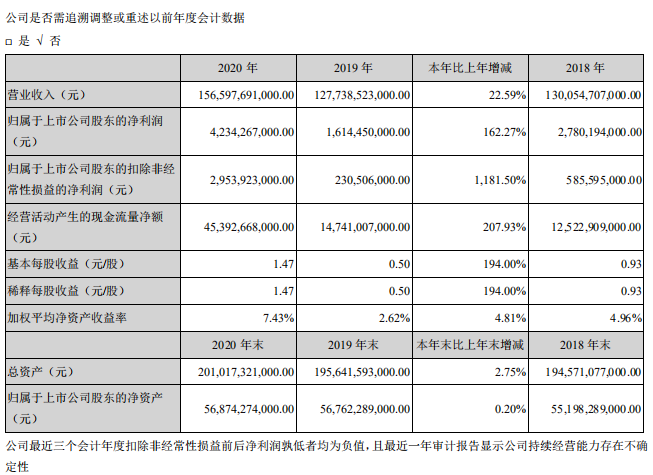 2020年,比亚迪终于结束了持续三年的净利下滑,迎来了2016年以来的首次正增长。