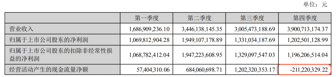 从经营活动现金流净额来看,第四季度出现了经营活动现金流净额为负的情况。这或许与年末企业应收账款增加有关,在此影响下,第四季度净利有所下降。