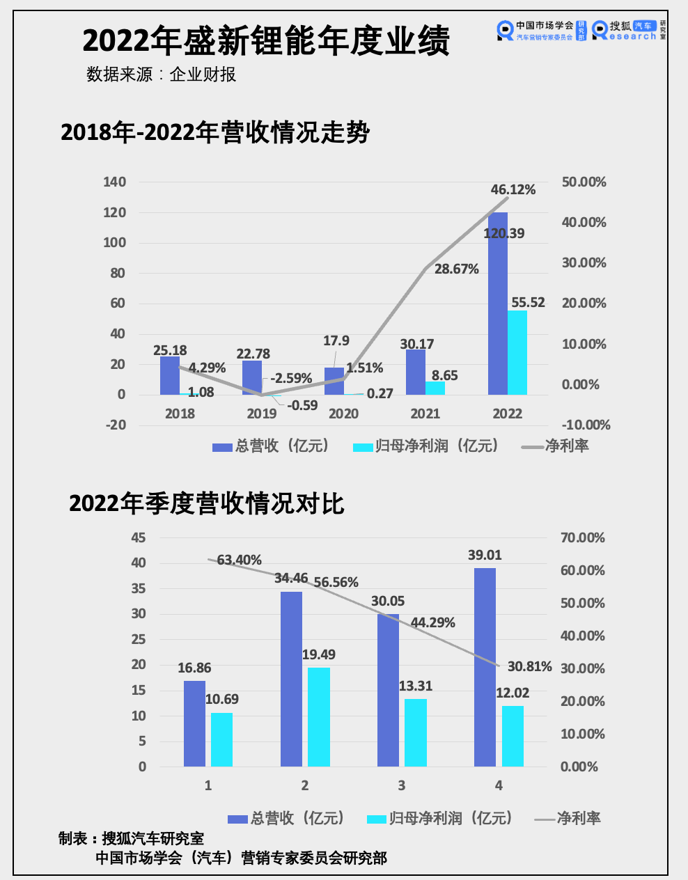 3月6日,盛新锂能发布了2022年年度报告。报告期内,公司营收达120.39亿元,同比增长229.03%;净利润55.52亿元,同比增长541.32%。