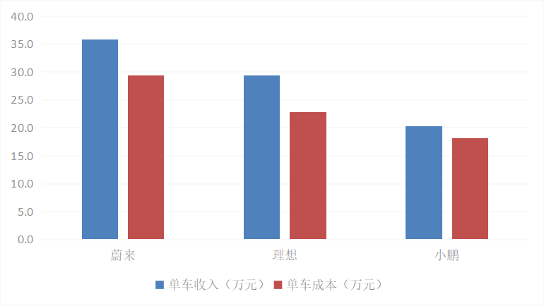 三家车企今年一季度单车收入和成本情况