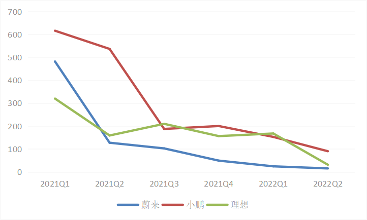 蔚来向下小鹏相上,理想两端突围