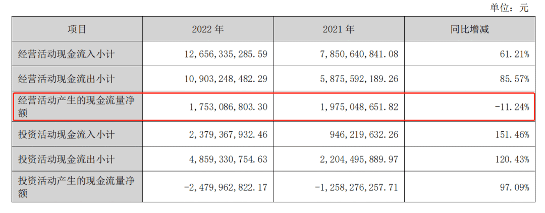 现金流方面,经营活动产生的现金流量净额为17.53亿元,较去年同期降低 11.24%。多氟多方面表示主要系原材料采购增加,开具票据增加所致。