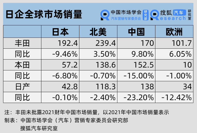丰田全球领跑 中国为本田最大单一市场 日产欧洲表现更胜一筹