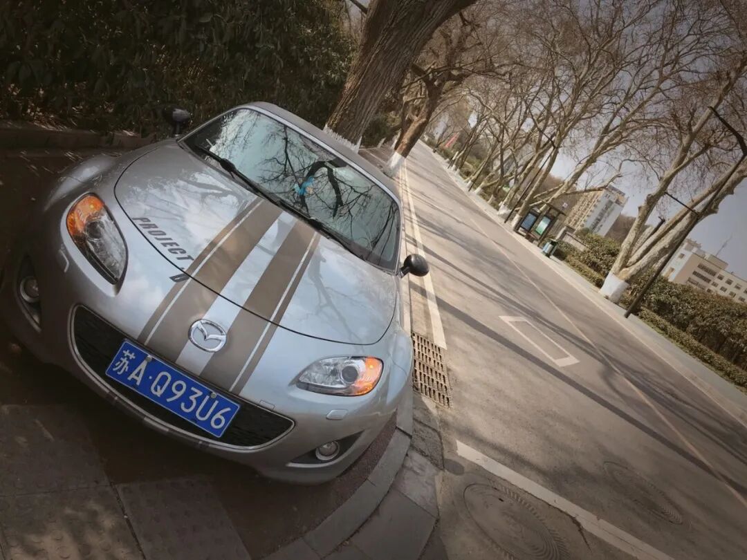 再讲个小插曲,那天约了去看车是中午,我想我开台同是马自达牌的车去可以套套近乎让对方很想把车卖我以车会友,于是把mx-5停在了树下。