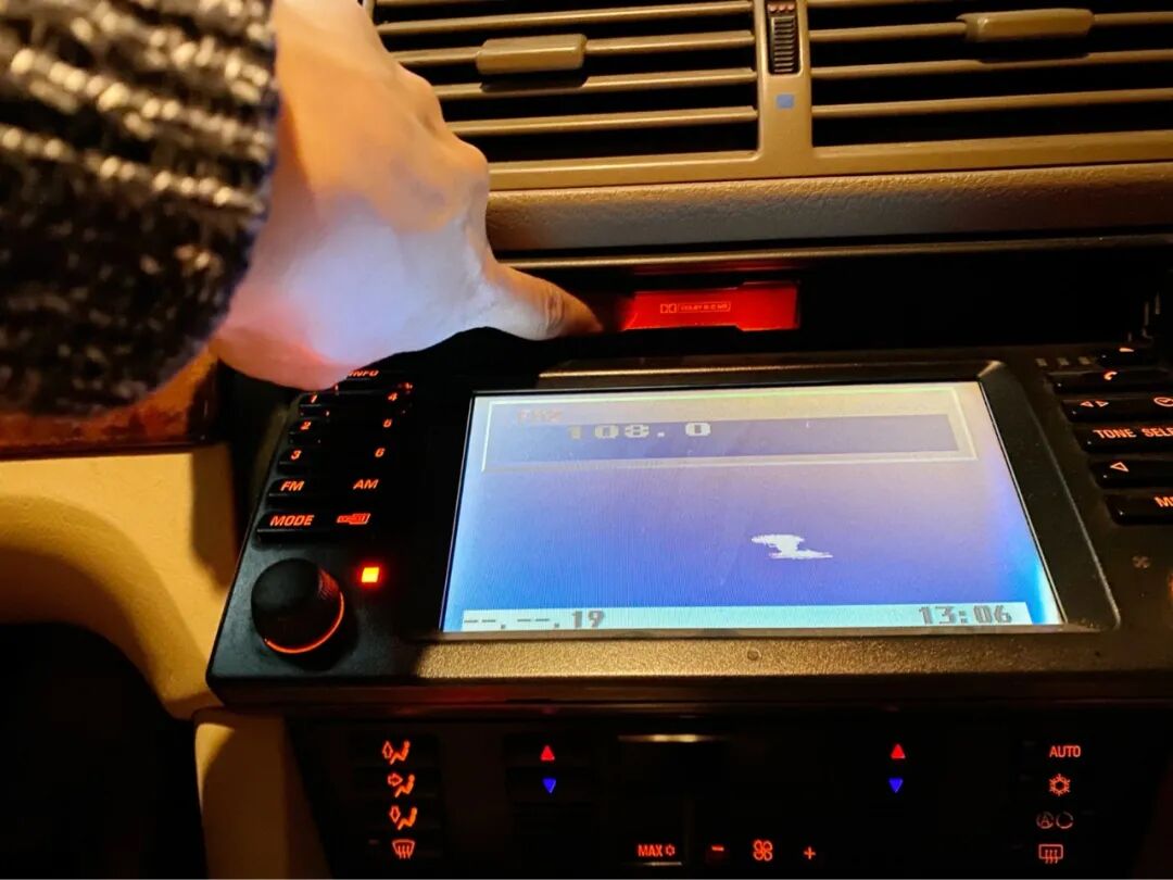 E39和它的死对头W210似乎都有一个毛病,那就是VDO断字,恰好文中这台E39的情况特别严重,它的底下一排全部没有了。甚至是里程数都看不到,不过个人从内饰的磨损程度来判断,这车实际历程应该没突破30W公里。而且令人感到庆幸的是车主由于没有“整理”内饰,所以原车线路都没动,原装的显示屏也还在: