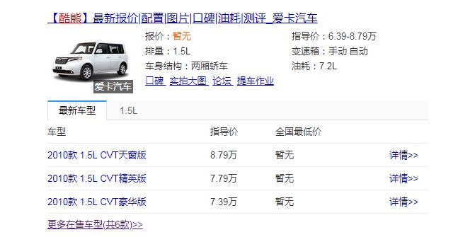 区别于许多国产山寨货,酷熊原型车其实就是丰田bB,第一世代,底盘代号XP130,2000-2005年之间生产,长城于2009年开始装配,换了脸换了标,到2010年就停产了!啊啊,真是短命呢!