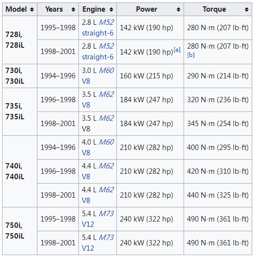 基于配备 12 缸发动机的 750iL,L7 的电子限制最高时速为 250 公里/小时 L7 仅在中东、东南亚和欧洲有售,共生产了 899 台。