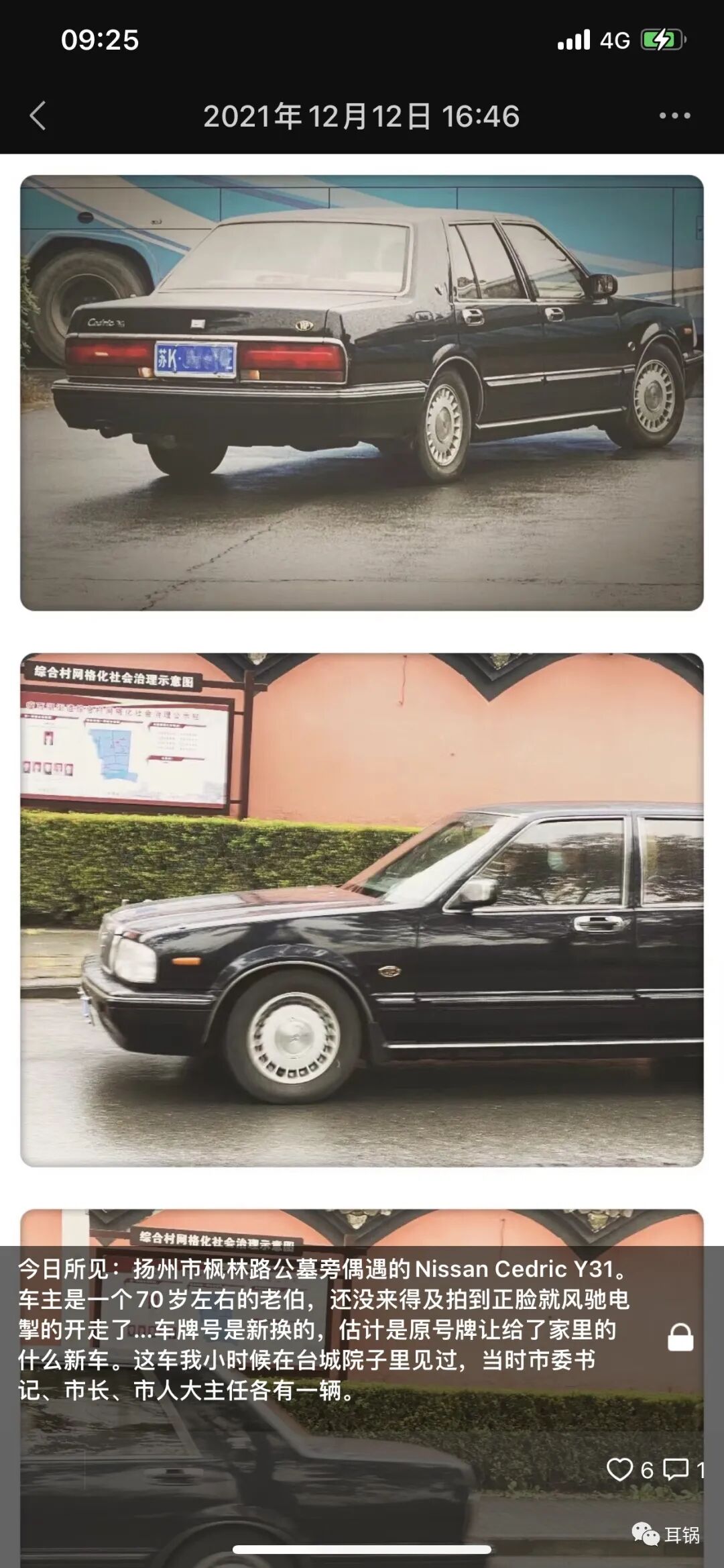 去年在扬州看见过一台Cedric Y31,那是冬天,化油器车难免雾化不良,但是那台一把着车,开起来没有转速指针忽高忽低的声音,可见车主是会调化油器车的老师傅。后来问问精通情报的网友,果不其然,那是某国企退休老司机的车,只不过他退休了,自己当年的车没能跟着他一起从单位退休,大概是被扔到了报废厂,于是老师傅自掏腰包又买了一台来亲自修复,也让我这样的看客在202X年再一次体验到90年代“市长”从办公厅出来时的威严,让人不仅想脱帽致敬。