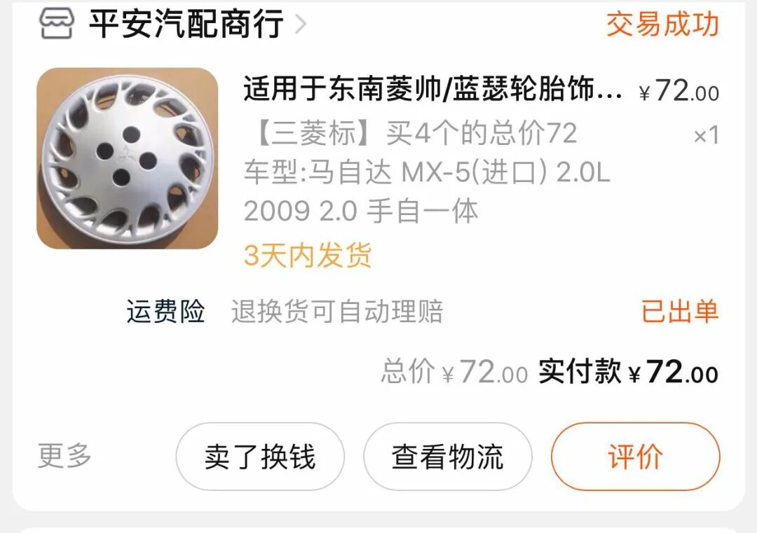 那时候黑内还不贵,1.5K收了一套,接着上网买了新的轮毂盖,4个80块:
