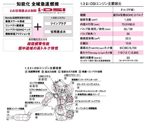 其实初代飞度在当年动力方面值得一提的并不是那颗L15A的VTEC引擎,而是底盘代号为GD1的L13A引擎。且配备i-DSi技术的L13A型机器才是最初的宣传重点,尽管其86匹马力的输出跟再早期一点的1300cc机器相比也几乎没有优势,但胜在拥有强力充沛的低扭:119Nm的扭矩在2800rpm时就可以全部输。GD系飞度最大的亮点在于省油,平均油耗在5.9-6.6l/100Km的水平,即便是20年后,最新的GR系飞度也就是这个水平,而已。