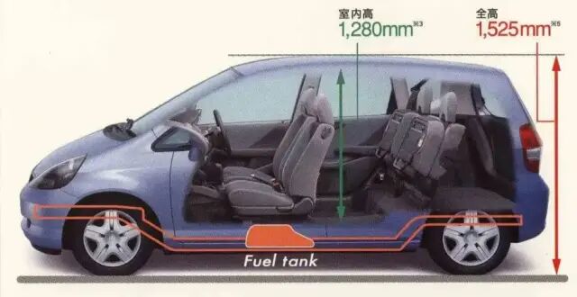 为了营造出巨大的车内空间,本田大胆地采用了将油箱安置在前排座椅下方的设计,配合特殊的魔术座椅,让它的车后部空间极致宽敞且诡计多端。参考相关数据,将初代飞度后排的魔术座椅折叠后,其空间达到了对手的1.7倍: