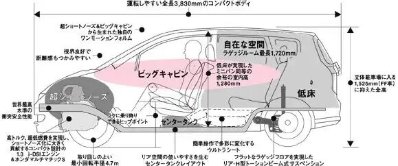 首先NCP13是1999年的平台,在2003年已经落后于飞度半个世代了。其次虽然也是尽可能的偷空间,但是威姿完全没有达到飞度“空间魔术师”的程度。