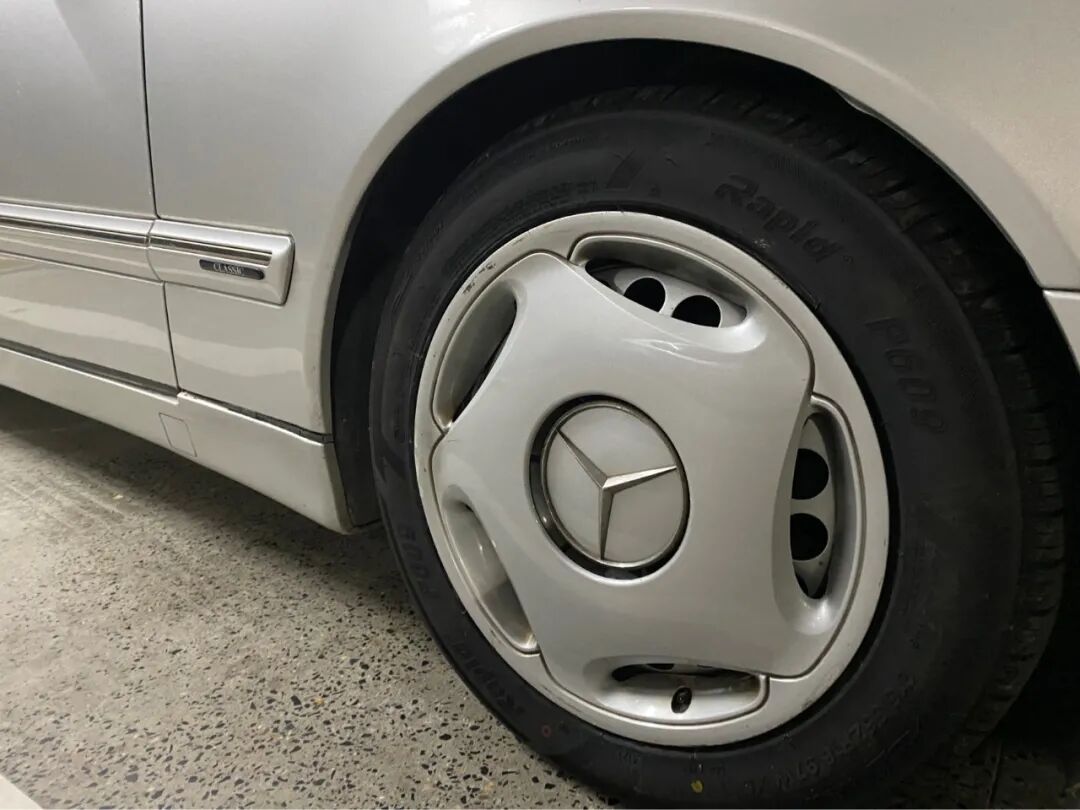 这台车子最大的亮点不仅仅是手波、布座椅,还有就是这一套原厂的奔驰16寸钢盆+轮毂罩的组合: