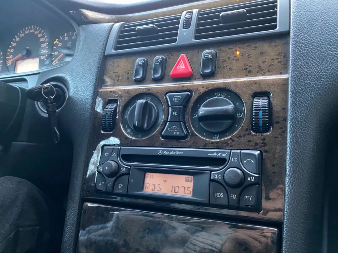 空调面板以及CD机头还残留着上一代W124的“古早痕迹”,只不过出厂年是1998年,那时候卡带已经不是主流媒介了,所以没有卡带盒了。大灯清洗也是上个世纪80-90年代开始流行的配置,这台车子并不是最低配,但是充斥着最简单的元素: