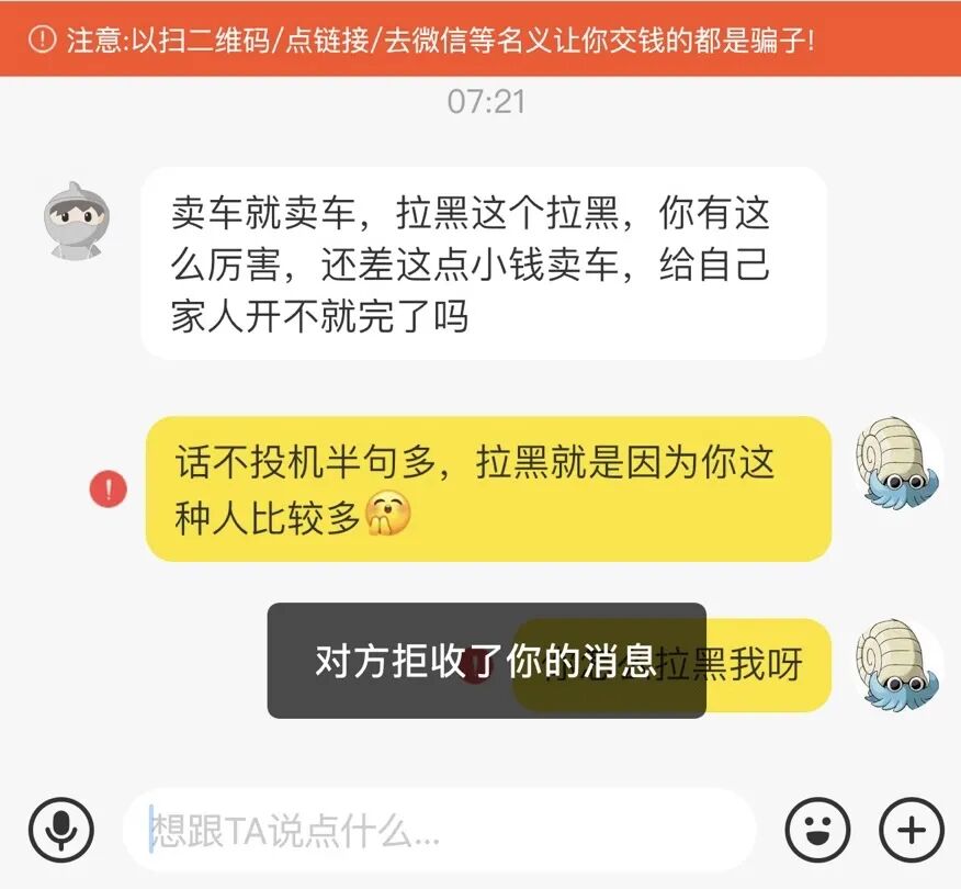 也有对半砍价拒绝拉黑的,换个号继续yygq,因为吸取了回喷会被处理的教训,所以这次我也采用了yygq的策略,结果对方先发制人: