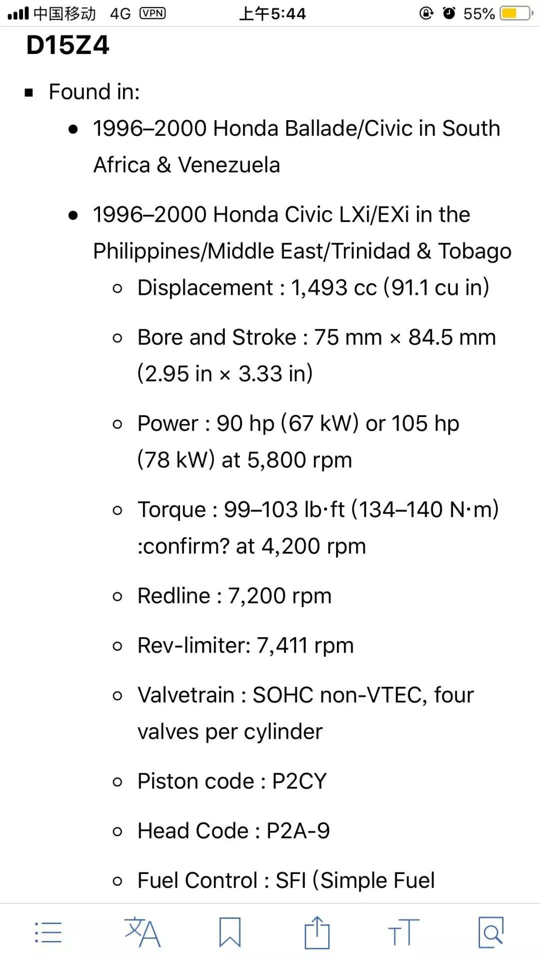 其次,马力孱弱。EK3的D15Z4机器原厂马力91匹: