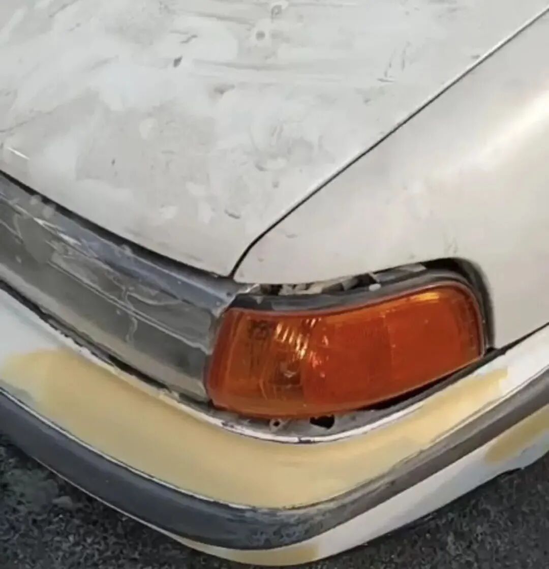 然后新的保险杠还缺一个转向灯,暂时找不到件,于是拿了一块“栃木”的车牌放上去遮遮丑: