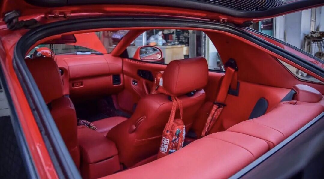 可惜国内大多数GTO都不是VR4,而是底盘代号Z11A的SL版本,也就是220匹前驱版那个。那车基本没有啥性能,但是因为如今大家都喜欢缅怀90年代,缅怀跳灯车,所以一台有手续的GTO卖到了10万块以上。甚至还有车贩子卖到20万,说是重金修复,说句难听的,基本上一台经典车落到贩子手上修复基本等于全毁,比如这种红色内饰不仅完全失去了原汁原味,而且让人看见想吐: