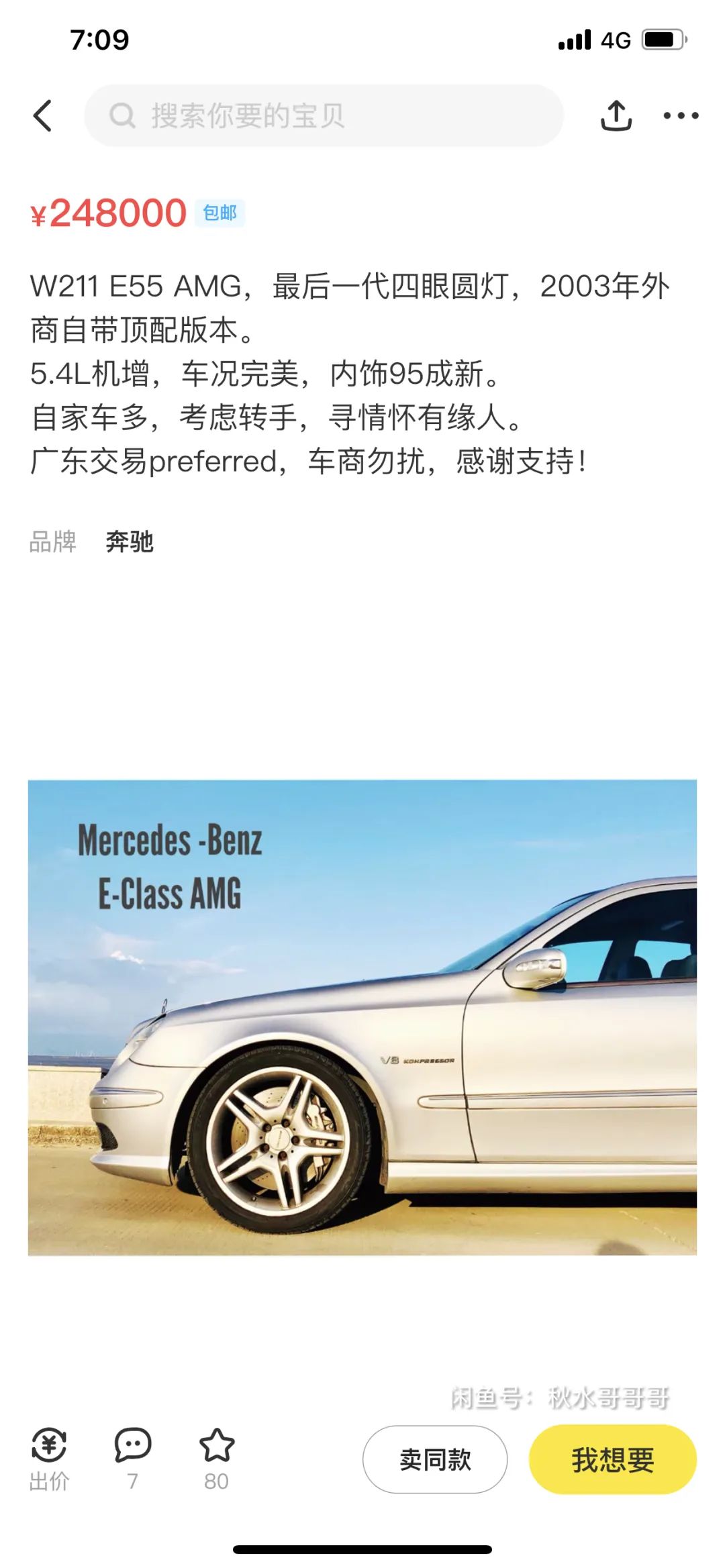 鉴于国内没有正式引进过这款车,目前市场上有正规手续的大抵是外商带进来的,闲鱼上E55大概在20W以上: