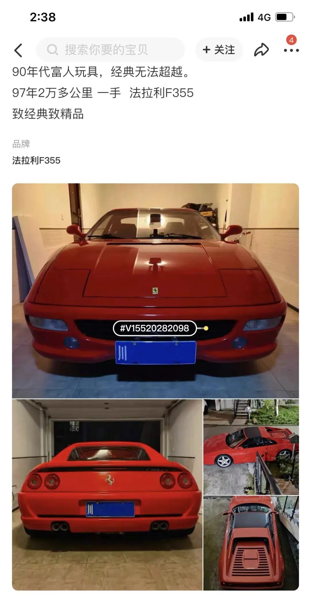 不过遗憾的是,虽然法拉利F355从1994年生产到1999年,但是在中国国内拥有路权的大概在个位数(不知道辽C大神今后会不会各显神通),而网上在售的自然也是挂到了天价: