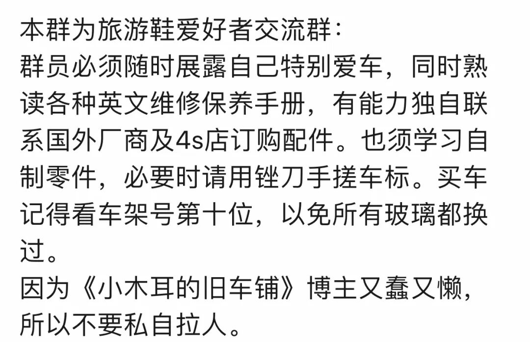 慎入,这个群里面的人不一定都爱车,但是肯定有各种妖魔鬼怪,行动纲领也不对头,而且在里面和人对喷可能会被人威胁说要起诉: