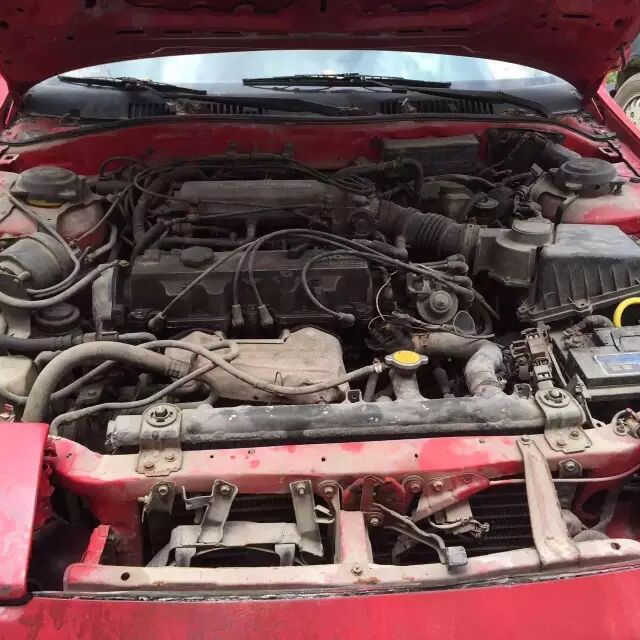 没记错,其中有一个跳灯是坏的,搭了电还是可以发动的,舱内布局很凌乱,4缸12气门,SOHC……可以说是年久失修,好不容易搭上电打开门的时候,那“铛铛铛”和皇冠133有点相像的提示声有一种灵车敲钟的感觉。