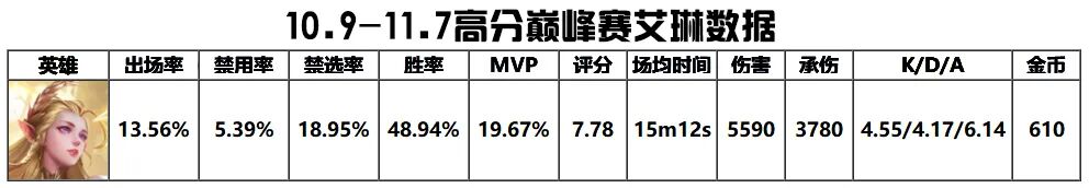 总的来说,艾琳还是可以玩,强度和上个赛季相比差不了多少,但肯定已经没有本赛季初的那种压制力。