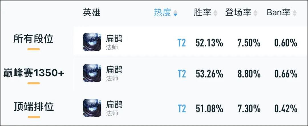 在经过9.1的增强后,扁鹊在三个分段的胜率、选取率都上升了不少。