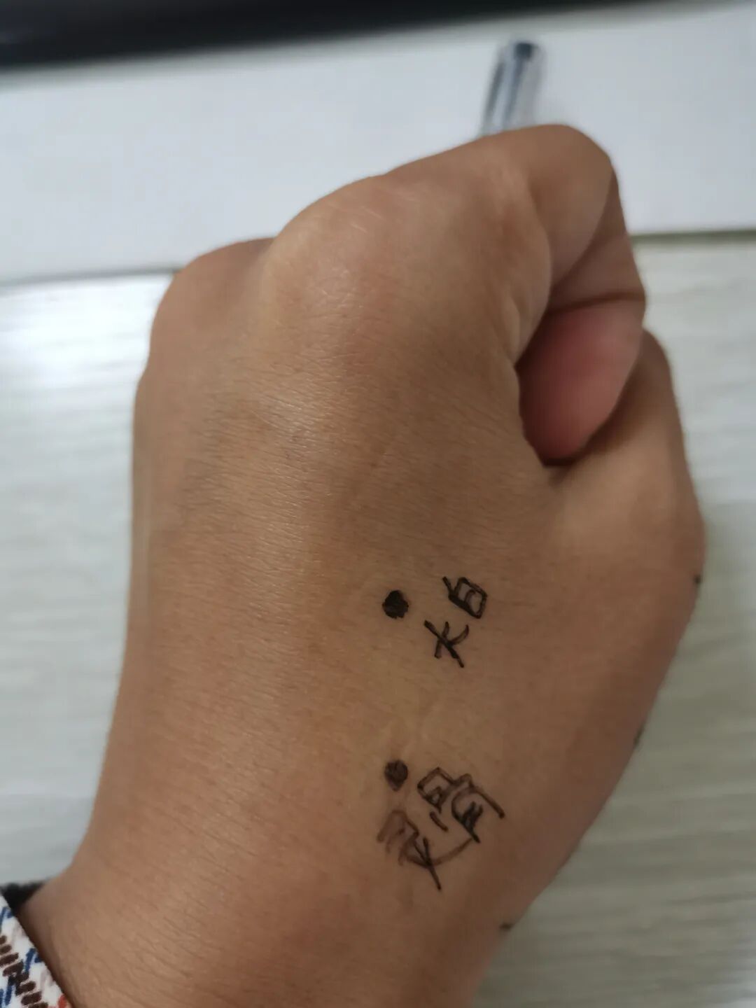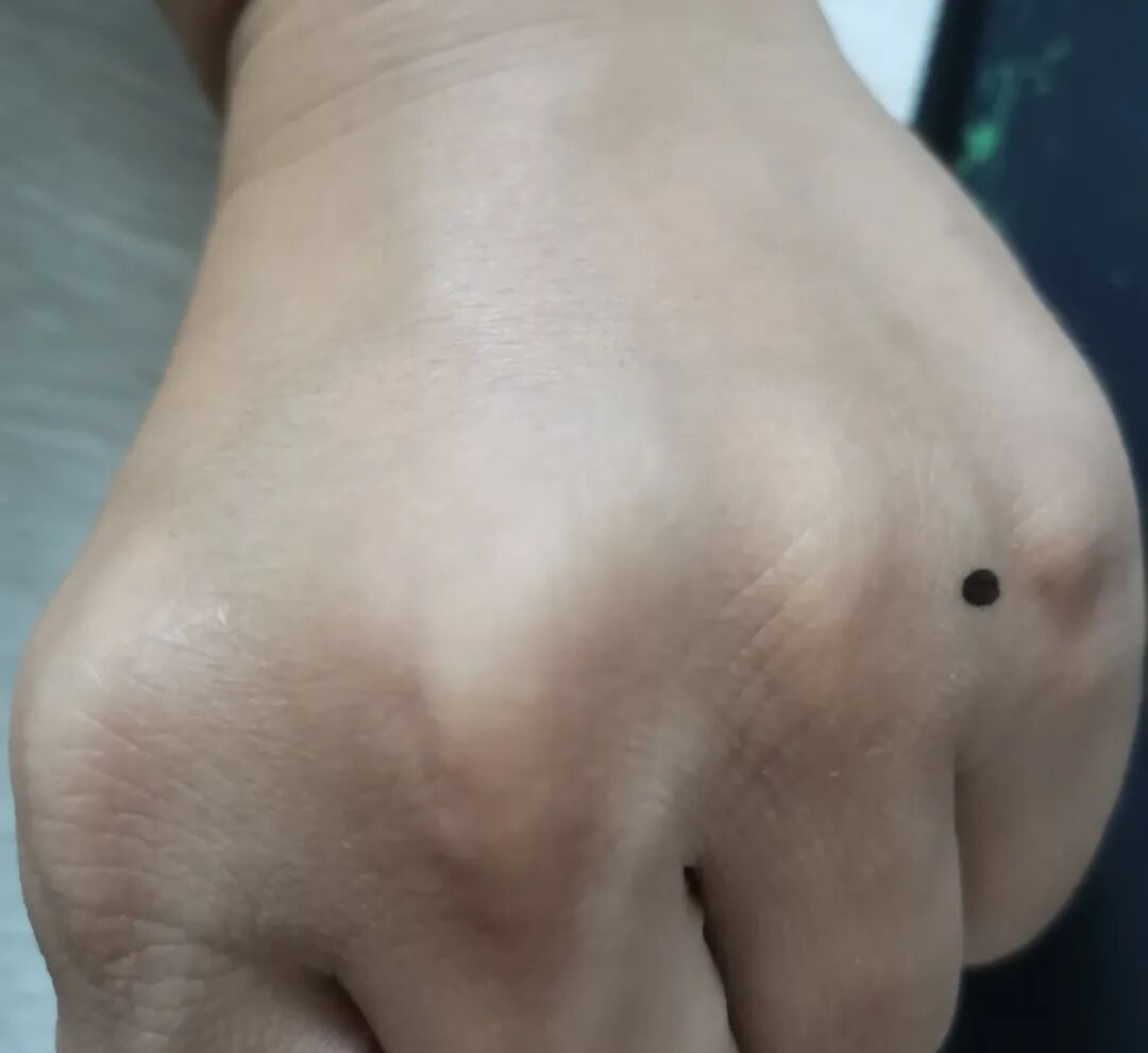 三叉三穴,找这个穴位的时候要握拳,在手背上,无名指和小指之间。(如果扎针,避开血管。)