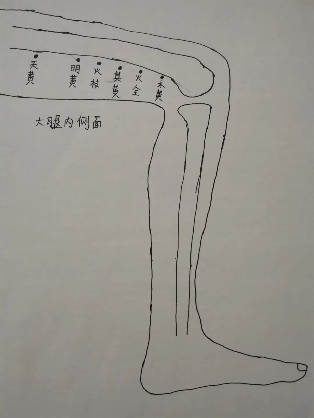 木黄穴:在大腿内侧,其黄穴直下三寸处。