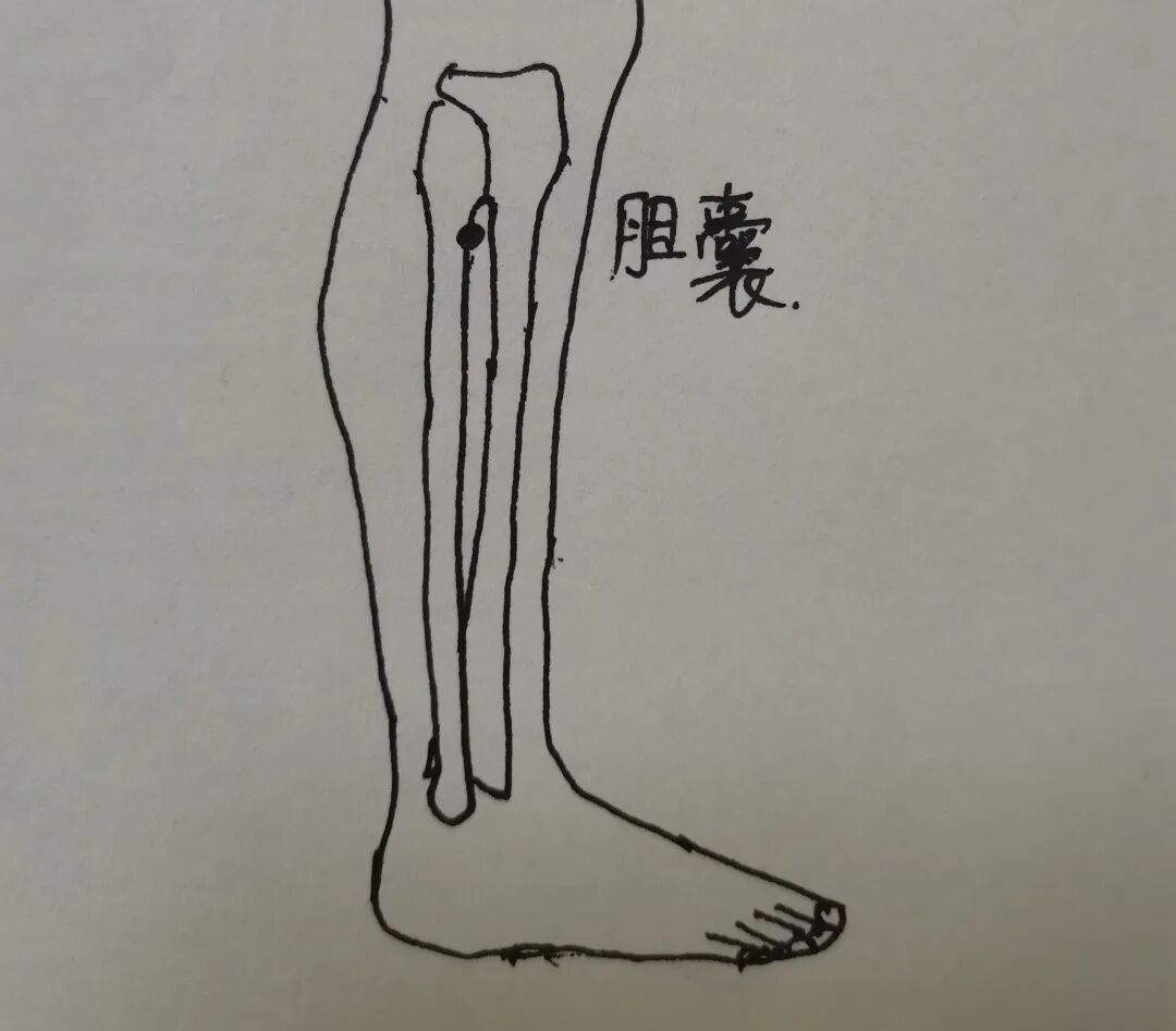 胆囊穴在小腿外侧上部分,腓骨小头前下方凹陷处直下2寸,也就是阳陵泉下2寸。同样的,也是找到最痛的位置,下针或者点穴。